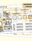 Sticker kits are a great way to put together a cohesive planner spread! This kit is intended for the weekly section of the Hobonichi Cousin planners and any planners that have 3.3 cm (1.3 in) width columns. Use the full kit for a decorative look or, stretch out the kit over several weeks for a minimalistic look!
